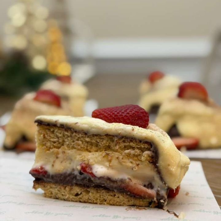 Our cakes are crafted with a soft, melt-in-your-mouth almond-flour base that brings natural richness to every bite.